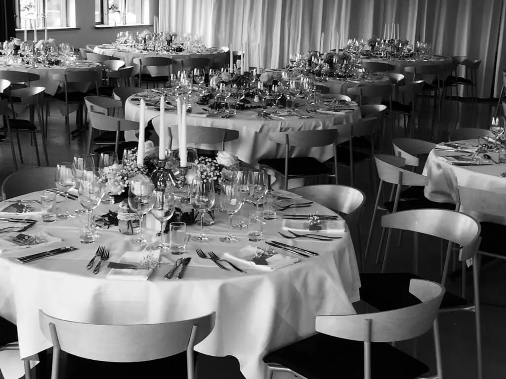 Vi står gerne for at placere bordkort og småpynt efter aftale, så længe det leveres senest 3 dage før og i en overskuelig stand.
